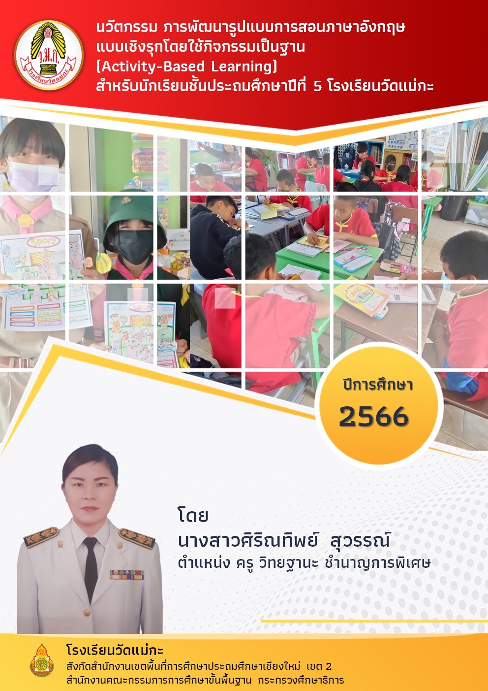 ชื่อผลงาน : นวัตกรรม การพัฒนารูปแบบการสอนภาษาอังกฤษ แบบเชิงรุกโดยใช้กิจกรรมเป็นฐาน (Activity-Based Learning) สำหรับนักเรียนชั้นประถมศึกษาปีที่ 5 โรงเรียนวัดแม่กะ